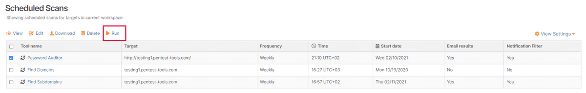 To keep your work flexible and productive, select Scheduler from the Dashboard, select a Tool name and Run a specific scan.